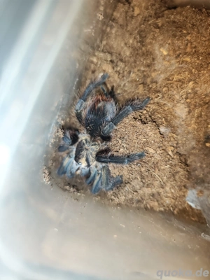 Wunderschöne M. robustum, eine bodenbewohnende Vogelspinne mit etwa 5cm Körpergröße (ohne Berücksichtigung der Beine). Sie wird noch um einiges größer. Eine tolle Jägerin und gräbt gerne Tunnel. Sie ist jetzt etwa 1,5-2 Jahre alt. An Selbstabholer. Von Privatperson ohne Rücknahme.