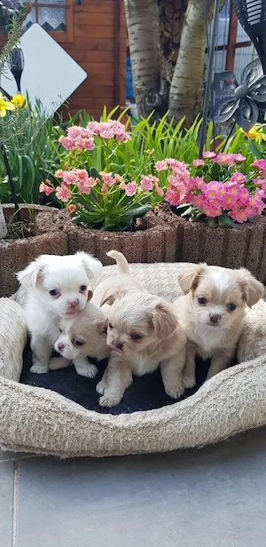 Sehr schöne, reinrassige Chihuahua Welpen, 6 Wochen, noch ein Männchen in weiß langhaar und ein Weibchen in creme kufzhaar frei, beide Eltern(Rumpfhöhe 22cm, Mama wiegt 3,5 und Papa 2,9 kg) leben bei uns in der Familie und sind bei der Besichtigung dabei. Die Kleinen sind absolut lieb, anhänglich, ...