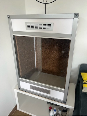 Zum Verkauf steht ein hochwertiges, selbstgebautes Terrarium, das bisher noch ungenutzt ist und sich daher in einwandfreiem Zustand befindet. Die Außenwände bestehen aus stabilen Forexplatten, die sauber in ein robustes Alu-Stecksystem eingefasst sind. Die Rück- sowie die Seitenwände wurden mit Naturkork ...
