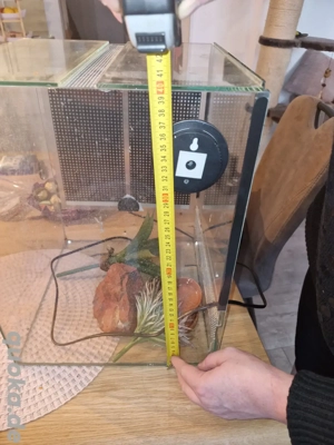 Hallo... Meine Vogelspinne ist ausgezogen und ihr altes Zuhause biete ich nun zum Verkauf an....mit Falltürscheibe. Es ist in einem sehr guten Zustand...nichts kaputt oder so. Eine Heizfolie von Lucky Reptile(14Watt) ist an der Seite verklebt...sie kann aber mühelos abgezogen werden wieder...sowie ein ...