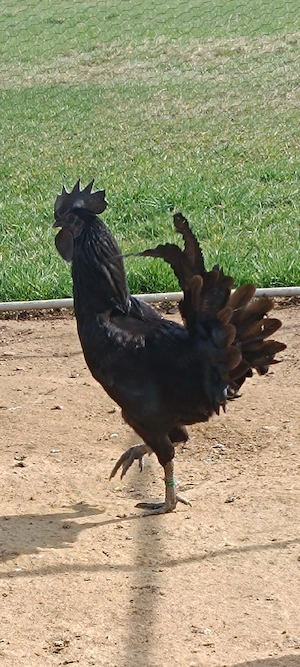 Gebe ein Hahn mit Hennen + Küken ab. Die Hennen legen fleißig Eier. Alle sind gegen Newcastle geimpft das Küken ist 11 Tage alt.