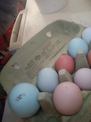 Hallo ich verkaufe frische Eier von meinem Hühnern pro Packung 3 bei Interesse einfach melden