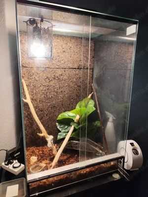 Gebe meinen Kronengecko (geb. 12 2021, vermutlich männlich) mit komplett eingerichtetem Terrarium ab. Der Gecko ist gesund, frisst problemlos (Pangea Repashy + Insekten) und besitzt einen intakten Schwanz. Enthalten: Terrarium 80x45x40 cm LED-Beleuchtung Gitterkorb für Wärmelampe Zeitschaltuhr ...