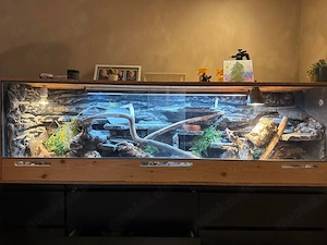 Verkaufe 2 Meter Terrarium Maße sind 200x60x50 inkl. kompletter Technik und Dekoration Heizlampen luckyreptil 50 und 35 Watt uv Lampe d3 Reptile uvb 2 Heizmatten plus 1 zusätzlich div Mineralien und Vitamine da wir leider und platztechnisch verkleinern müssen haben wir für unsere schätze keinen ...