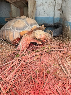 wir müssen uns leider von unseren Henry trennen er ist eine Afrikanische Sporen Schildkröte und ist 26 Jahre alt