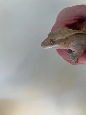 VORERST RESERVIERT! Dieser kleine Kronengecko geb. am 21.10.25, sucht einen neuen Breispender. Er ist gesund und munter und frisst am liebsten Lebendfutter (Heimchen) und Brei von Gecko Nutrition. Der Vater hatte leider eine zu spät erkannte Polydaktylie (einen Zeh mehr), weshalb ich ihn nur als Pet ...