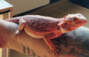 hypo Sandfire Red ( extrem selten und wertvoll ) 11 Monate alt Männchen ( 1.0 ) zahm, top fit Fütterung ( heimchen, Salat und Vitamine) Zubehör : Terra 120x60x60, UV Lampe 50w bright Sun, Deko ohne Terra 250