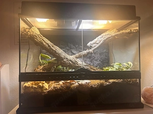 Ich verkaufe ein neu eingerichtetes Exo Terra Terrarium in der Maße 60x45x45. Mit dabei ist: - Rückwand -Lampenfassung (Exo Terra) -Einrichtung (siehe Bilder) -2x Jungferngeckos - 1x Malachit-Stachelleguan (Sceloporus malachiticus) -2x UVB Lampen (Exo Terra) - LED Lampe (Exo Terra) - Thermometer Nur ...