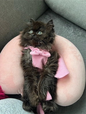 Britisch-Langhaar-Katze, fast drei Monate alt. Sie ist sehr süß und freundlich, spielt und kuschelt gerne und hat ein liebevolles Wesen. Sie ist stubenrein, sauber und ruhig eine perfekte Begleiterin für Zuhause. Bei Interesse bitte melden.