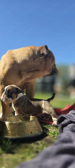 Unsere Continental Old english Bulldog Welpen suchen ihre eigene liebevolle Familie . Unsere Welpen wachsen selbstverständlich mit ihrer Mama und uns zusammen im Familienanschluss auf. Ab der 4. Woche ( sofern es das Wetter zulässt) kommen die kleinen Mäuse mit uns raus und können auf unserem riesen ...