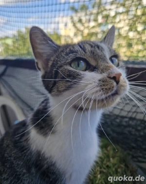 Die am 24.4.21 geborene katze farbe grau weis getiegert sucht ein Zuhause am besten mit ihrer halb Schwester 08.08.21 geboren dreifarbige katze bissel zurück haltent was sich schnell legt . Sonst auch sehr verschmust Beide kenn hunde und andere Katzen Klein kinder oder große kinder gewöhnt Nicht geimpft Beide ...