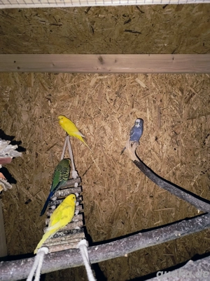 Zur Abgabe stehen diese 5 Wellensittiche, Hähne und Hennen sind dabei. Vom alter her ist alles dabei von ca.1 Jahr bis ca. 3 Jahren Gehalten wurden sie in einer Beheizten Voliere mit 2 Nymphen Kostenlose Abgabe
