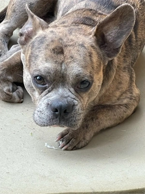 Mein freundlicher Bulldoggen-Mix Rüde (Französische Bulldogge   Old English Bulldog   Boxer) steht g