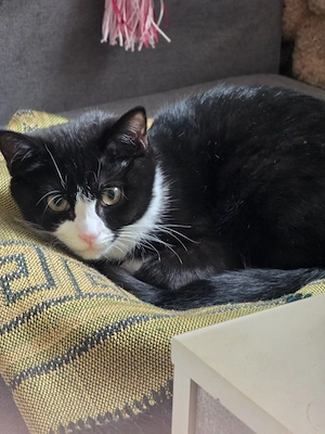 Liebevolle Tuxedo-Katze sucht ein warmes Zuhause