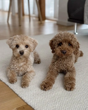 Niedliche Maltipoo-Welpen suchen ein neues Zuhause