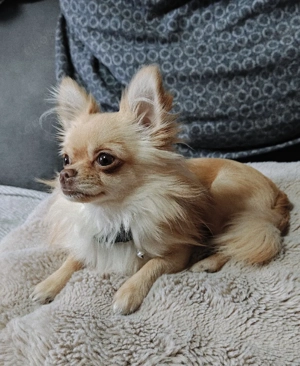 Geboren: 04.05.2025 Geschlecht: Rüde Dieser kleine Chihuahua ist ein schüchterner, sehr lieber Junge mit einem großen Herzen Nach kurzer Eingewöhnung zeigt er sich verspielt, anhänglich und sanft. Er liebt Nähe, gemeinsames Spielen und gemütliche Stunden auf der Couch Ideal für ruhige, ...