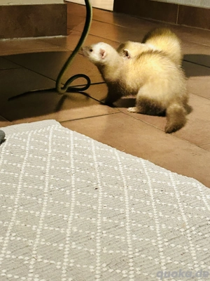 Wir geben unsere beiden Frettchen in ein liebevolles Zuhause ab. Es ist ein Rüde und eine Fähe. Sie sind Geschwister und werden nur zusammen abgegeben. sie sind ca. 20 Wochen alt und in der Farbe Zimt. Bei Bedarf kann Zubehör wie Toilette, Transporttasche, Geschirr etc. mitgegeben werden. Die beiden ...