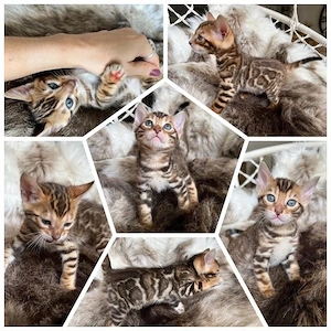 Die Kitten sind bengaltypisch verspielt, neugierig, intelligent, sehr abenteuerlustig und menschenbezogen. Die Kitten kennen Alltagsgeräusche und sind bestens sozialisiert, fressen selbständig Futter, gehen eigenständig aufs Katzenklo, sind stubenrein. Die Kleinen sind bei Abgabe geimpft und gechippt ...