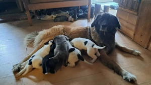 Am 30.12.25 hat unsere superliebe Hündin (Bernhardiner x Leonberger) von einem superlieben Rüden (Argentinische Dogge x Pointer) entzückende Welpen geboren. Es sind noch 3 Rüden und eine Hündin zu vergeben. Erwartetes Endmaß ist ca 70cm Schulterhöhe bei 50-60kg. Sie wachsen bei uns im Haus zwischen ...