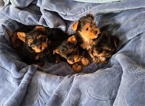 meine Yorkshire hündin hat am 20.01.2026 fünf welpen zum Welt gebracht zwei Rüden und drei Weibchen Die Welpen sind bereit in ein neues liebevolles Zuhause zu ziehen Die Kleinen sind verspielt, lieben Kinder und kennen bereits andere Haustiere. Die Welpen sind Kern gesund und würden geimpft und mehr ...