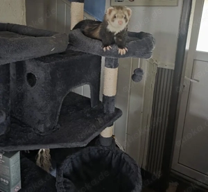 Wir geben wegen Zeitmangel unsere super handzahmen Frettchen ab. Sie leben im kompletten Haus mit Katzen und Hunden . Nachts sind sie in ihrem Stall. Die Fähe ist tragend und wird in 4 Wochen ca werfen . Wenn man sie mit Käfig nimmt 300 euro sonst 250 euro. Gebe neue deko (Hängematten ) usw. mit dazu ...