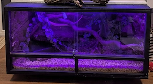 Verkaufe ein Terrarium aus OSB mit den Maßen 120x60x60. Es ist schwarz lackiert. Die Rückwand besteht aus bauschaum der mit Kokosfaser und Terrarienerde bestreut ist. Es ist ein heatpanel und eine Lampenfassung verbaut. Das alles wurde vom Vorgänger gemacht. Wir haben das Terrarium nur für den Übergang ...