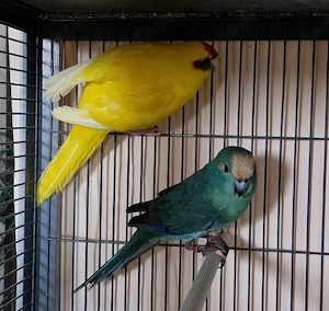 Gebe schweren Herzens meine beiden Ziegensittiche ab. Sie sind ein tolles Paar und werden daher nur zusammen abgegeben. Sie sind ca 1,5-2 Jahre alt und sehr intelligente Vögel. Blau: Hahn Gelb: Henne Bei Interesse gebe ich ebenfalls einen Papageienkäfig ab. Preis ist für das Paar.