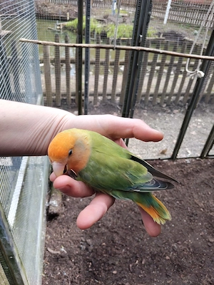 sie ist circa 5 Jahre alt. Sie ist sicher weiblich, da sie schon Eier gelegt hat. Sie möchte auch gerne brüten. Sie sucht ein neues Zuhause bei einem männlichen Partnervogel. Sie kann nicht so perfekt fliegen und braucht deshalb eine Voliere mit Quergitter. Bitte um Bilder der zukünftigen Haltung ...