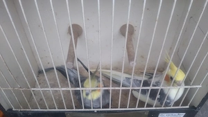 Großer Käfig mit 2 Nymphendittiche