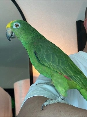 Wir geben unsere Gelbscheitelamazone in ein liebevolles Zuhause ab. Er ist aus 2022. Er ist ein Männchen. Er hat Herkunftsnachweis, DNA und Virustest. Er ist eine Teilhandaufzucht. Wir geben ihn leider ab, da meine Frau eine Allergie entwickelt hat. Er frisst aus der Hand und ist ein echt lieber Papagei. ...