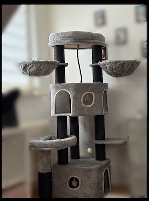Hallo, Ich verkaufe einen hochwertigen und stabilen Kratzbaum in elegantem Grau ideal für 2 3 Katzen. Er wurde erst vor 1 Woche gekauft (Neupreis: 88 ) und ist daher absolut neuwertig, ohne Abnutzung oder Gebrauchsspuren. Der Kratzbaum bietet viele Möglichkeiten zum Spielen, Klettern und Entspannen: ...