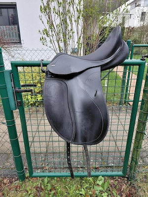 Gebrauchter Dressursattel Marke: TEKNA 17 Zoll 31cm Kammerweite verstellbare Pauschen Versand grundsätzlich möglich, wenn Kosten übernommen werden